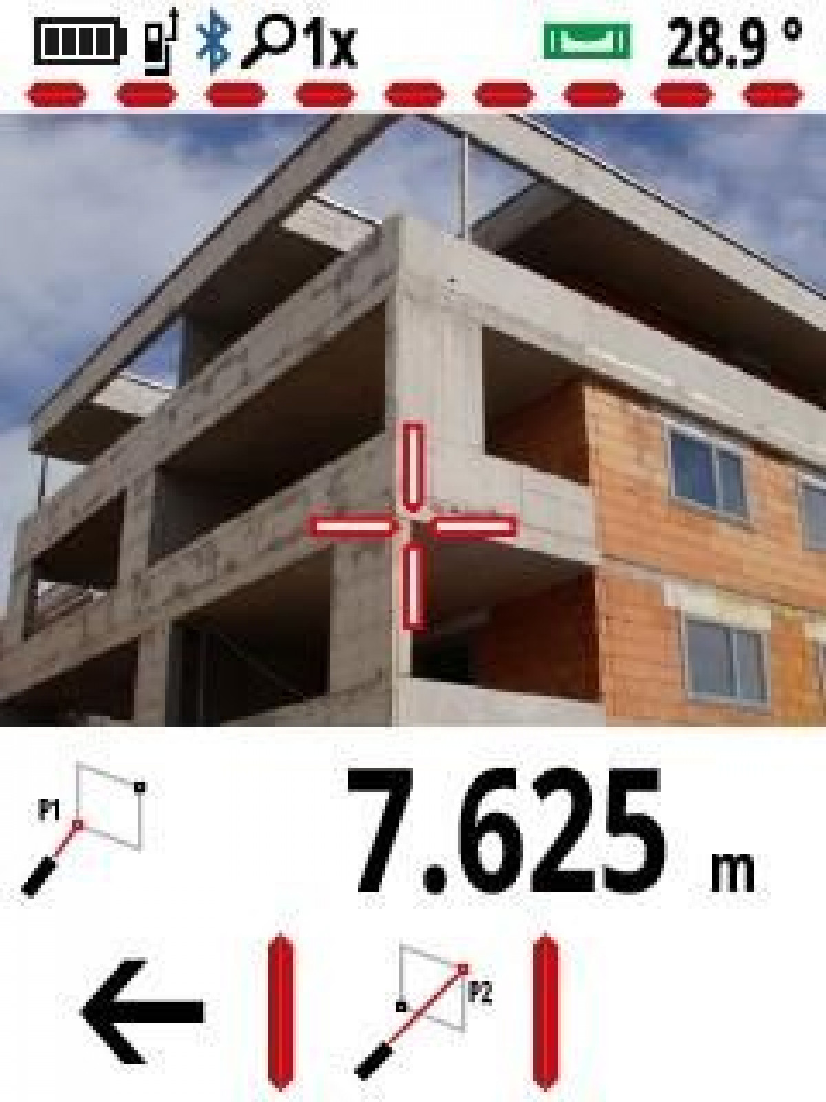 Med den banebrydende 360 graders vertikal/horisontal vinkelmåling kan du stille dig på jorden og måle f.eks. en tagflade eller en facade op, blot ved at "skyde" i hver hjørne. Det sparer mange ressourcer.