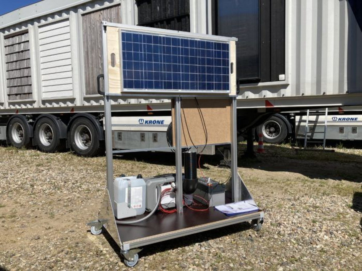 Brændselscelle, batteri og solcelle er monteret på et stativ. Plader er aftagelige og der er 15m ledning monteret i solcellen.