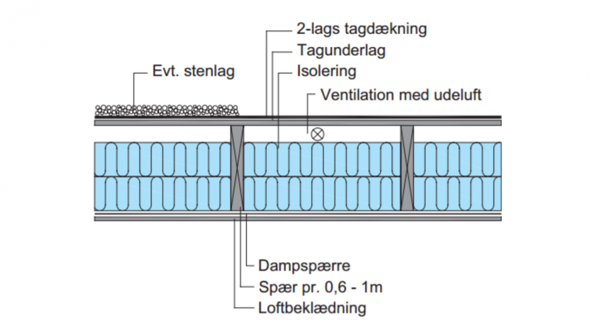 Ved et koldt tag forstås en tagkonstruktionen opbygget af træ eller træbaserede plader, og konstruktionen ventileres med udeluft, således at den øverste del af tagkonstruktionen følger udetemperaturen. Da den yderste del af konstruktionen er kold om vinteren er der altid en vis risiko for kondens i tagkonstruktioner opbygget efter det kolde tag princip. Underlaget for tagdækningen er krydsfiner eller brædder, med et minimums fald mod afløb på 1:40 (25 mm pr. 1000 mm).