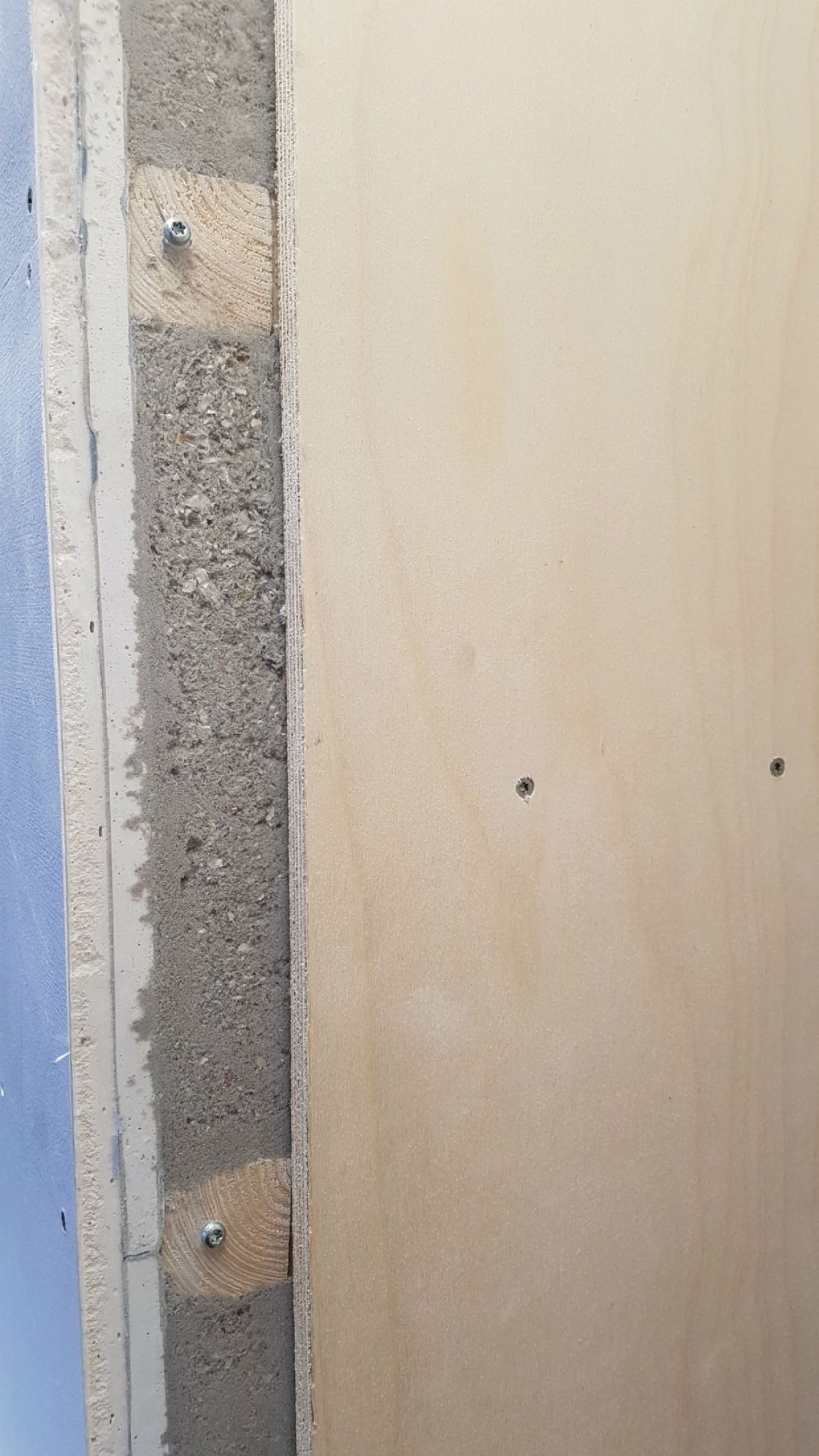 I forbindelse med en massiv ydervæg kan der opbygges en let indervæg, hvor Papiruld indblæses gennem det første lag beklædning fra den indvendige side af konstruktionen, hvorefter hullerne repareres således, at de fugt- og brandtekniske krav overholdes. Se animation af hvordan konstruktionen opbygges med tung formur og let indervæg: