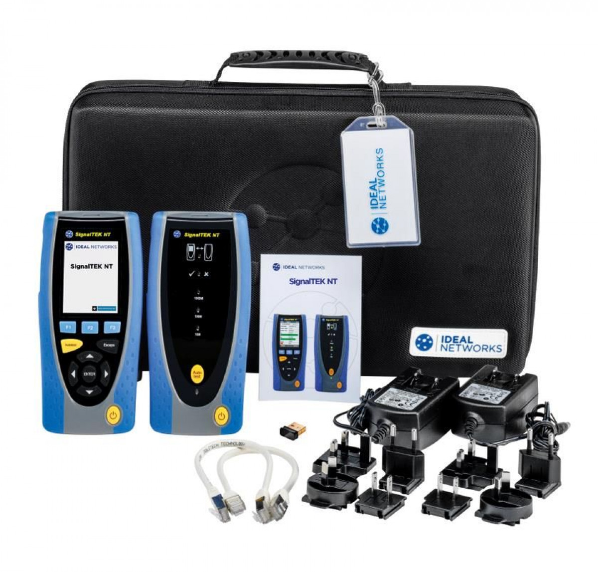 Ved hjælp af den gratis App "IDEAL AnyWARE" (kommer sammen med instrumentet) er det muligt at sende testrapporter til din mobile enhed. SignalTEK NT leveres inkl. 1 x Displayenhed, 1 x Remoteenhed, 2 x NiMH batterier (genopladelige), 2 x Strømforsyninger, 2 x Patchkabler 30cm Kat. 5e STP, 1 x USB Wi-FI adapter, vejledning på CD, 1 x kvik guide samt 1 x bæretaske.