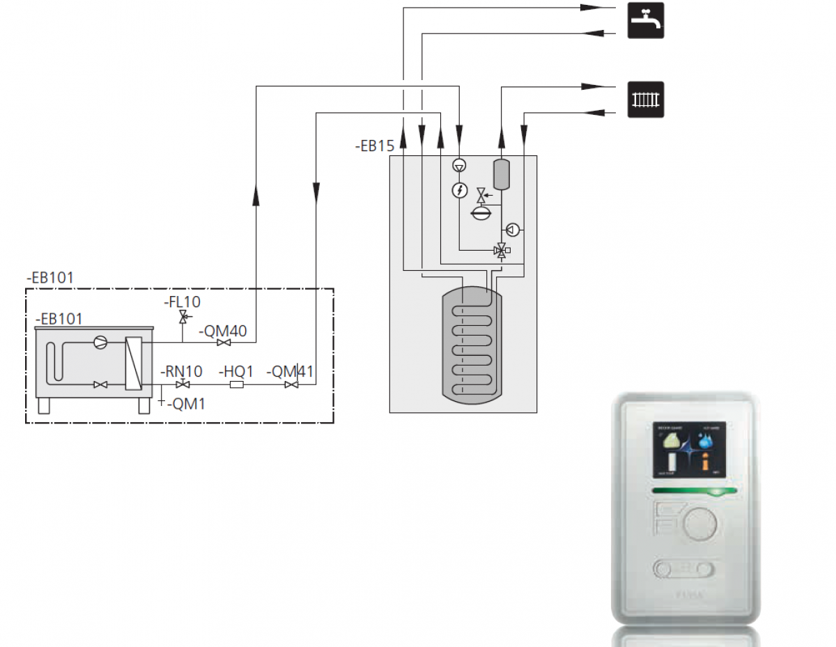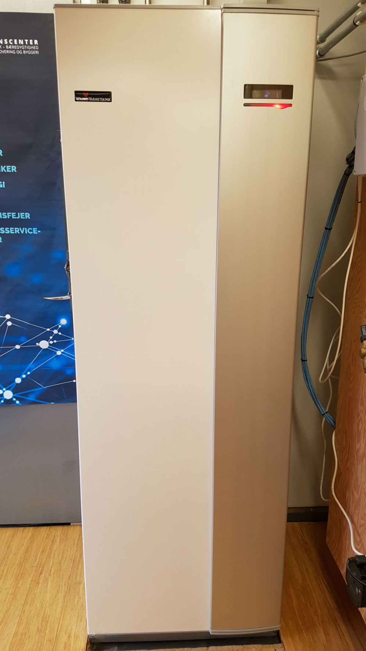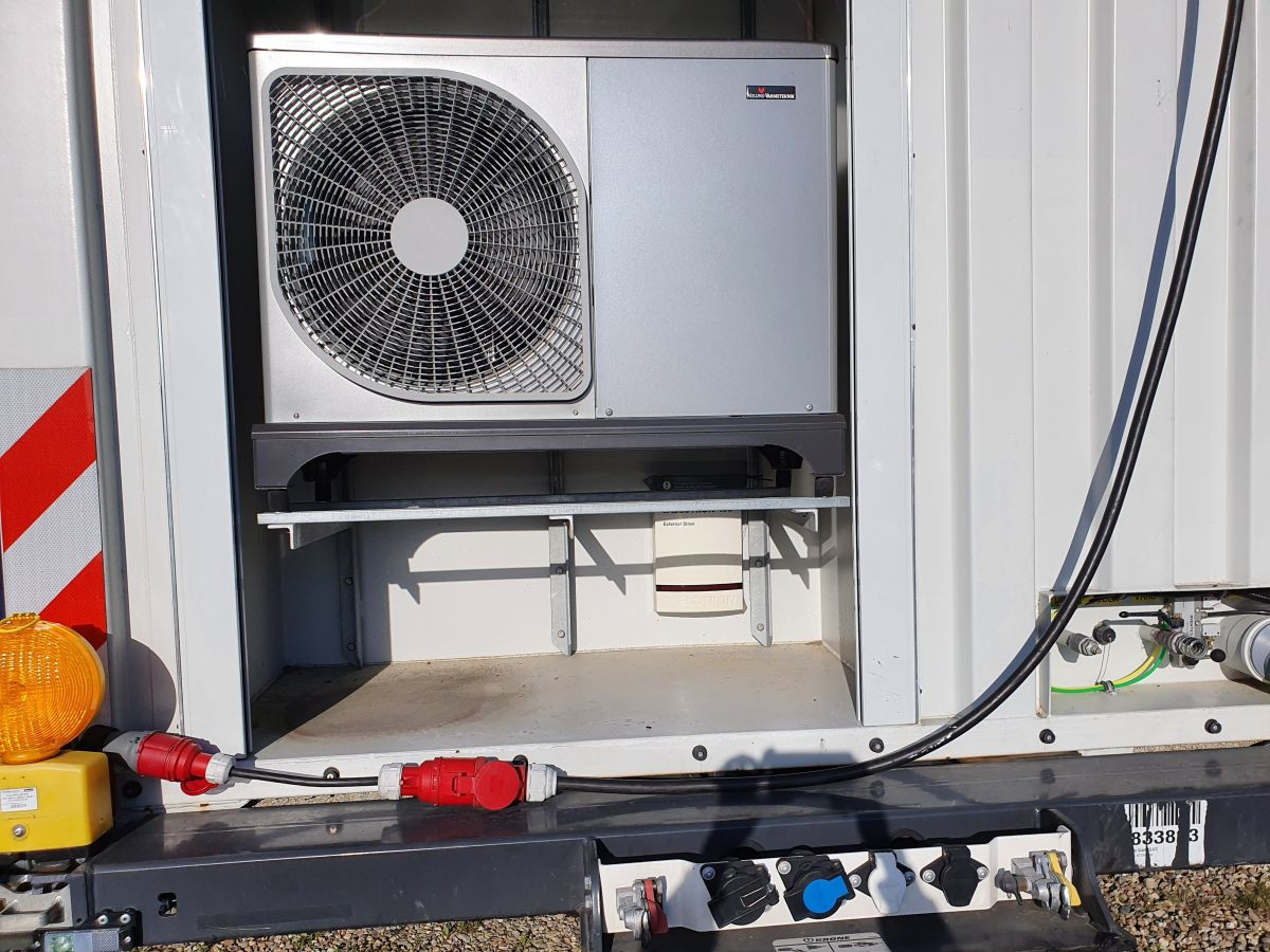 I MTC’en er der opsat en luft-vand varmepumpe fra Vølund. Modellen hedder VVM320 og består af et indemodul, samt en udendørs luft/vand-enhed. Indemodulet er koblet på den udendørs enhed, samt boligens varmedistributionssystem. Systemet giver boligen billig og miljøvenlig opvarmning og brugsvand, på en effektiv måde.
